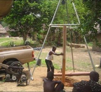Developing Technologies became involved in this vital area of need when a small NGO in Sierra Leone sought help in drilling wells for local villages. The percussion drill, in which a heavy drill bit is repeatedly raised and dropped, was chosen as the drilling technology. It is simple and effective in all soil conditions.